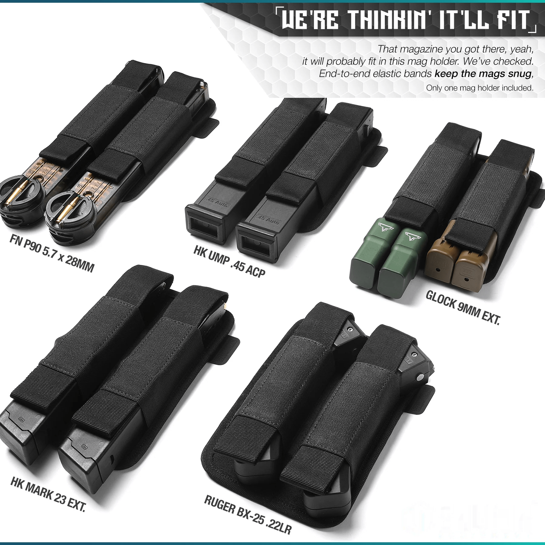 We're thinkin' that extended mag you got there fits in this extended magazine holder. How do we know? We actually fitted all the extended mags you can think of when we made it.