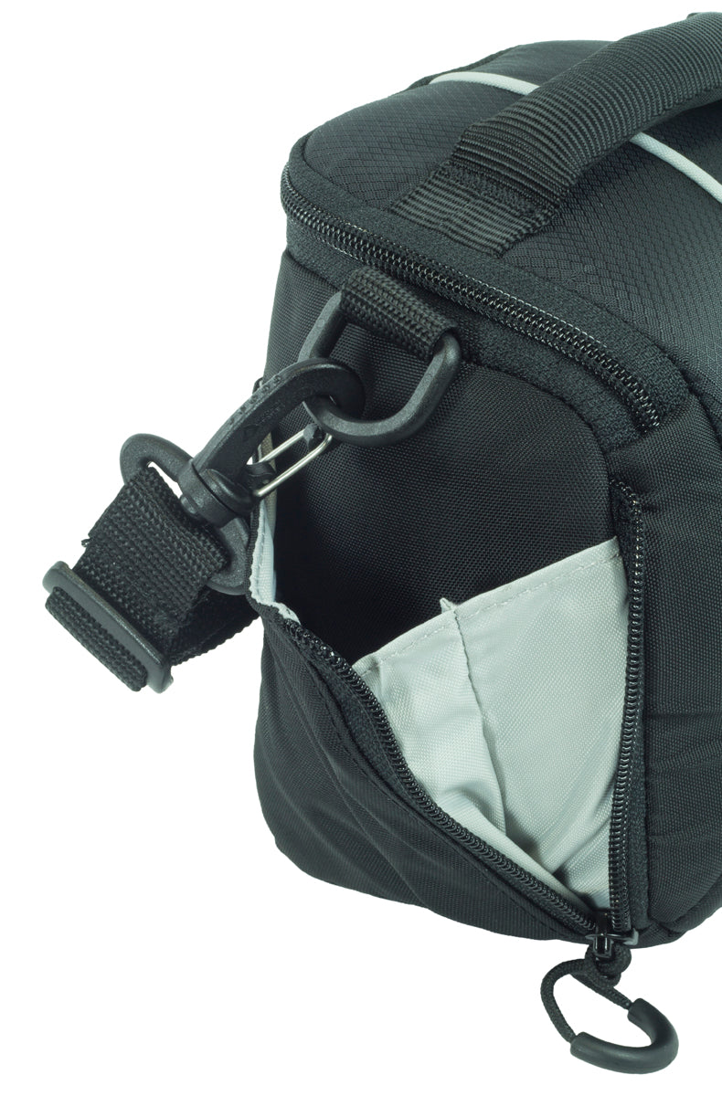 - Flat, zippered ID pocket inside discreet camera bag