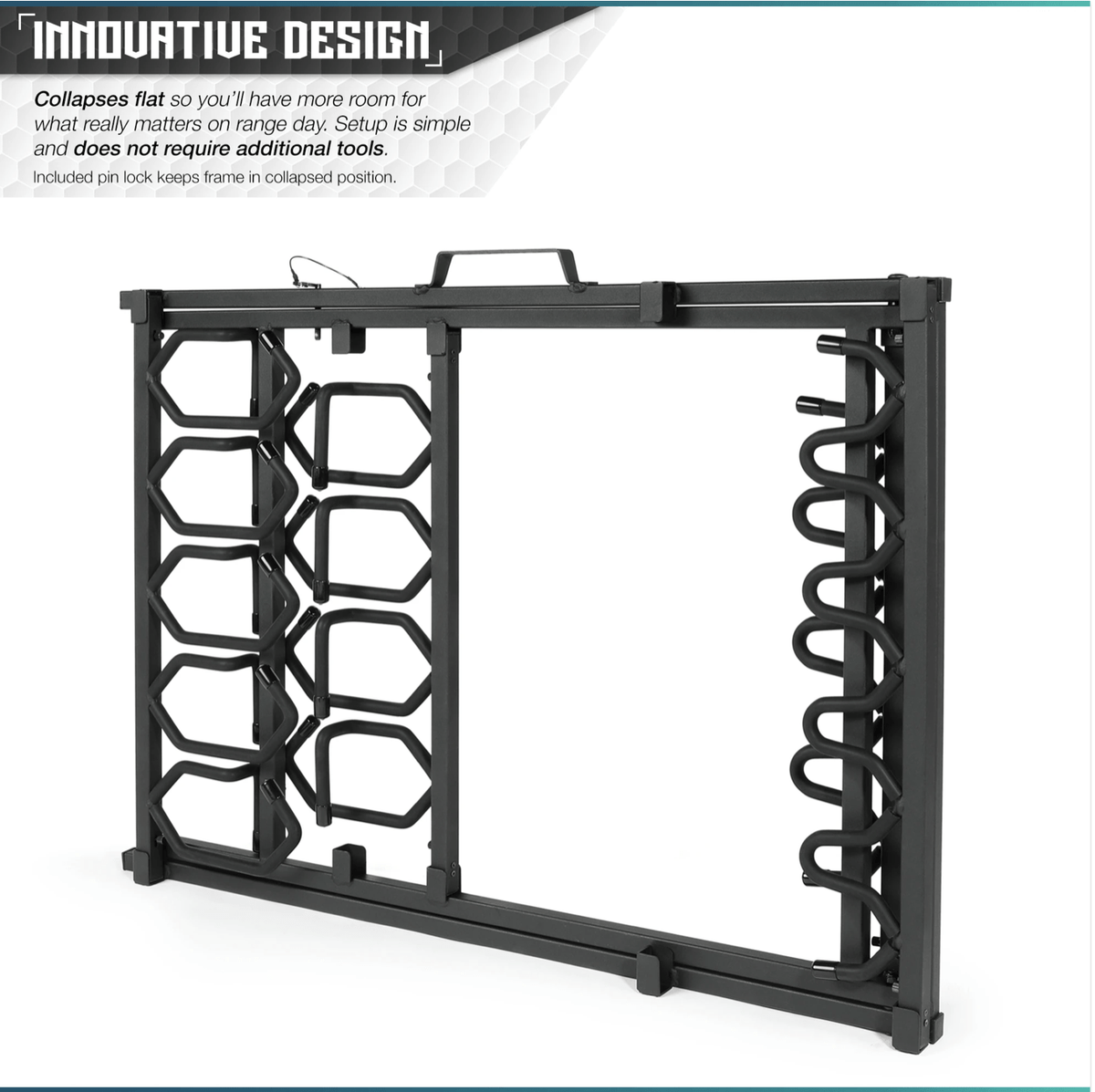 Tool-Free Assembly for Fast Setup: No tools? No problem. The Shorty Rack of 9 assembles in minutes without the need for hardware or complicated instructions. Simple, functional, and built for shooters on the move.