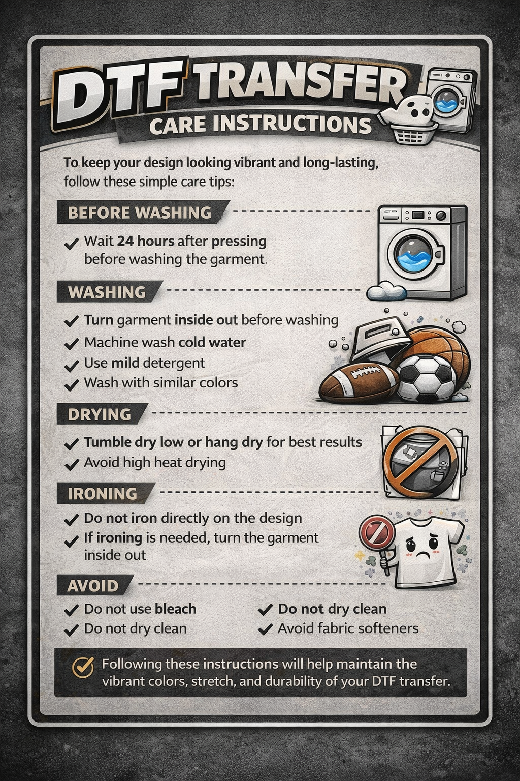 Create vibrant, professional-quality apparel with our high-quality DTF (Direct-to-Film) transfers. Simply press your design onto your garment and enjoy bold colors, sharp detail, and long-lasting durability.